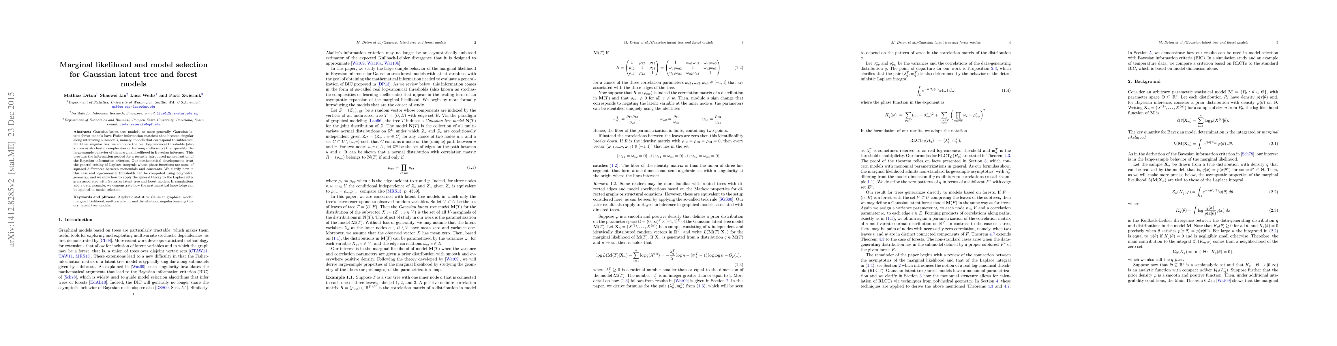 This paper develops methods to compute real log-canonical thresholds for Gaussian latent tree and forest models, addressing singularities in their Fisher-information matrices. The findings enable the application of a generalized Bayesian information criterion for model selection, demonstrated through simulations and a data example.