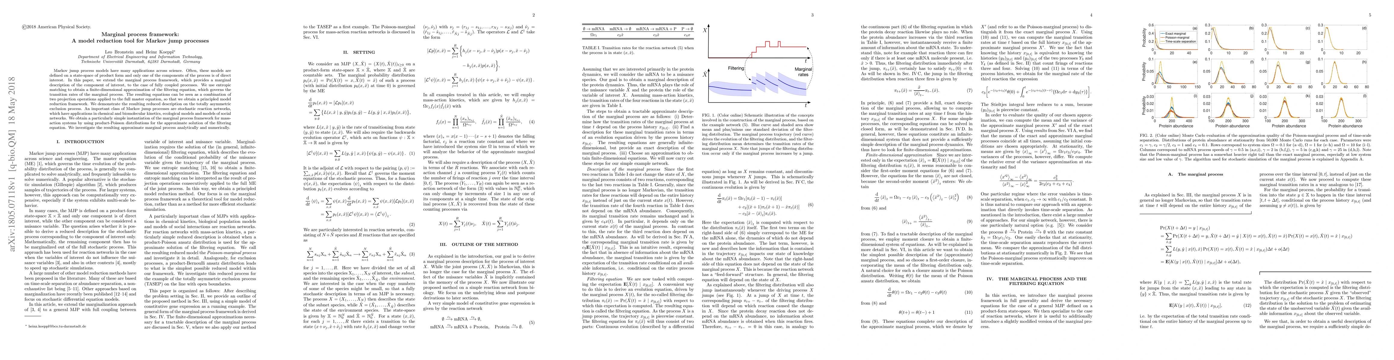 Markov jump process models have many applications across science. Often, these models are defined on a state-space of product form and only one of the components of the process is of direct interest. In this paper, we extend the marginal process framework, which provides a marginal description of the component of interest, to the case of fully coupled processes. We use entropic matching to obtain a finite-dimensional approximation of the filtering equation, which governs the transition rates of the marginal process. The resulting equations can be seen as a combination of two projection operations applied to the full master equation, so that we obtain a principled model reduction framework. We demonstrate the resulting reduced description on the totally asymmetric exclusion process. An important class of Markov jump processes are stochastic reaction networks, which have applications in chemical and biomolecular kinetics, ecological models and models of social networks. We obtain a particularly simple instantiation of the marginal process framework for mass-action systems by using product-Poisson distributions for the approximate solution of the filtering equation. We investigate the resulting approximate marginal process analytically and numerically.