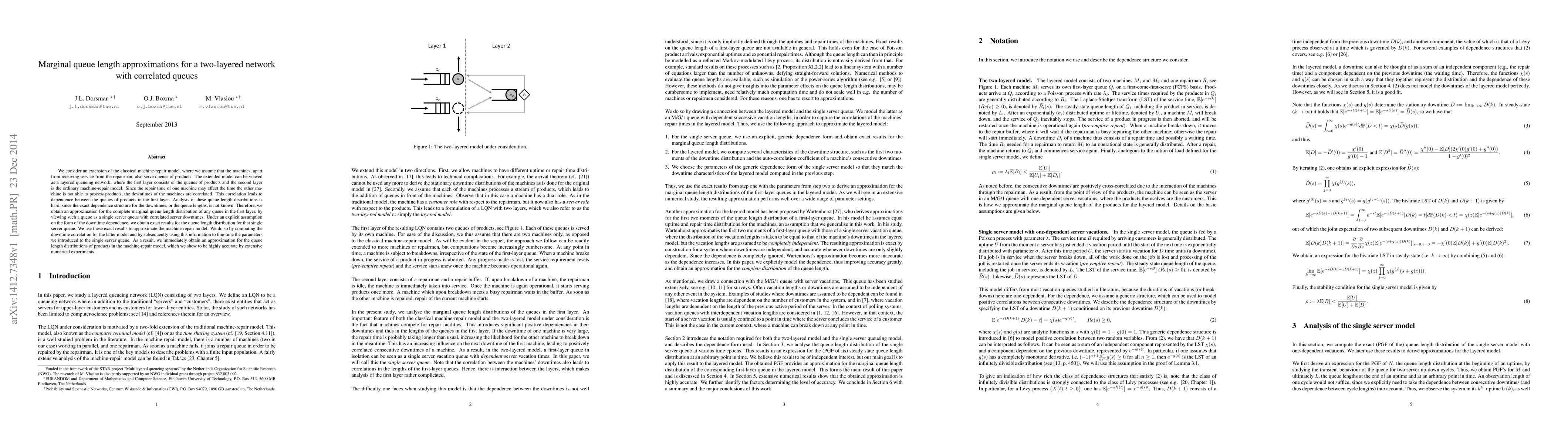 We consider an extension of the classical machine-repair model, where we assume that the machines, apart from receiving service from the repairman, also serve queues of products. The extended model can be viewed as a layered queueing network, where the first layer consists of the queues of products and the second layer is the ordinary machine-repair model. Since the repair time of one machine may affect the time the other machine is not able to process products, the downtimes of the machines are correlated. This correlation leads to dependence between the queues of products in the first layer. Analysis of these queue length distributions is hard, since the exact dependence structure for the downtimes, or the queue lengths, is not known. Therefore, we obtain an approximation for the complete marginal queue length distribution of any queue in the first layer, by viewing such a queue as a single server queue with correlated server downtimes. Under an explicit assumption on the form of the downtime dependence, we obtain exact results for the queue length distribution for that single server queue. We use these exact results to approximate the machine-repair model. We do so by computing the downtime correlation for the latter model and by subsequently using this information to fine-tune the parameters we introduced to the single server queue. As a result, we immediately obtain an approximation for the queue length distributions of products in the machine-repair model, which we show to be highly accurate by extensive numerical experiments.