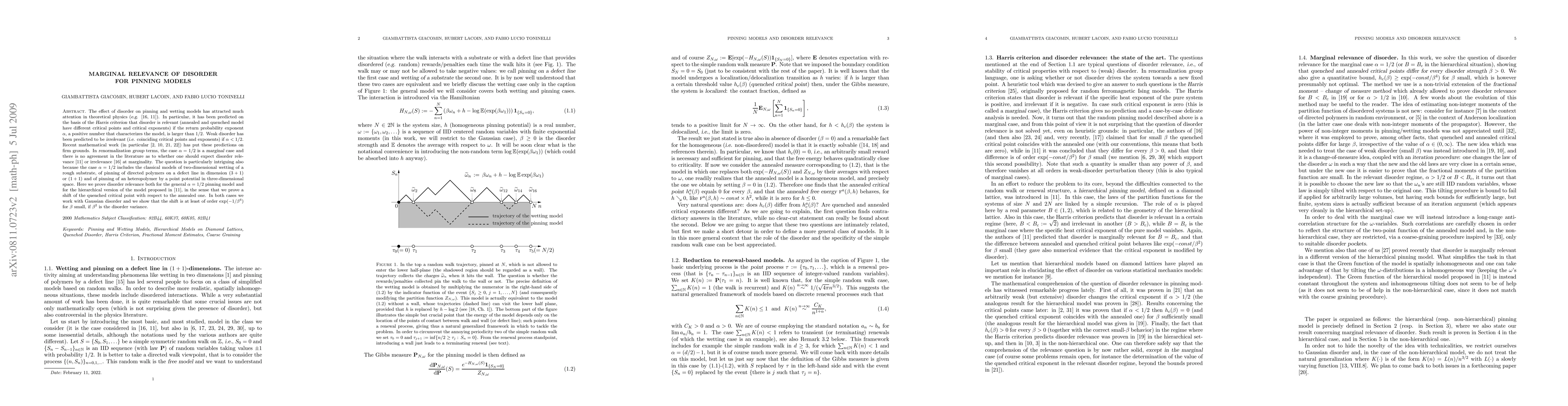 This paper demonstrates that disorder is relevant for pinning models when the return probability exponent alpha equals 1/2, contrary to previous uncertainty. It shows a shift in the quenched critical point compared to the annealed one, proving that disorder impacts the critical behavior even at marginality.