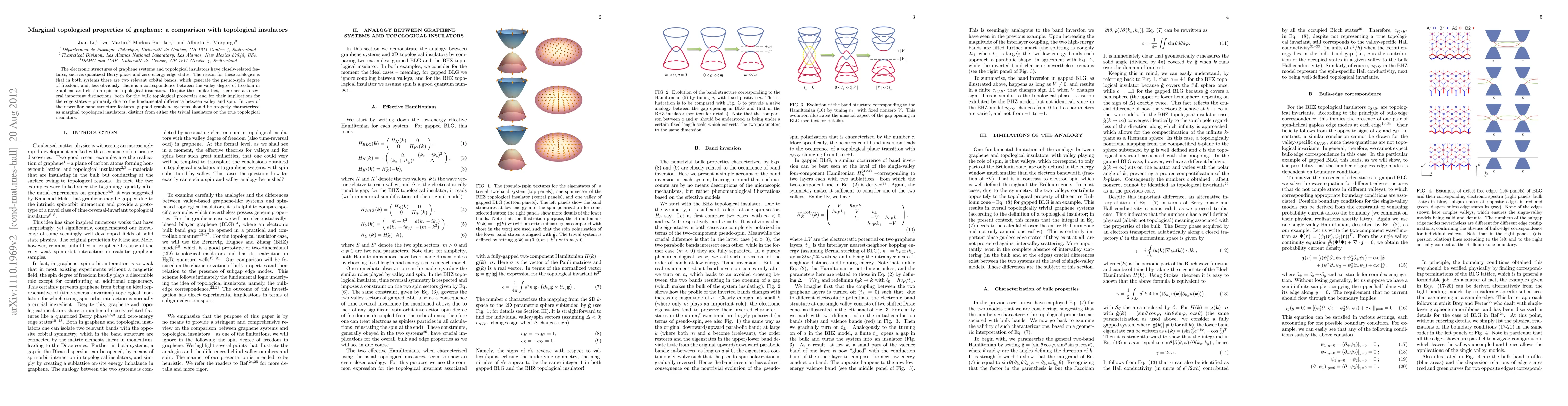 The electronic structures of graphene systems and topological insulators have closely-related features, such as quantized Berry phase and zero-energy edge states. The reason for these analogies is that in both systems there are two relevant orbital bands, which generate the pseudo-spin degree of freedom, and, less obviously, there is a correspondence between the valley degree of freedom in graphene and electron spin in topological insulators. Despite the similarities, there are also several important distinctions, both for the bulk topological properties and for their implications for the edge states -- primarily due to the fundamental difference between valley and spin. In view of their peculiar band structure features, gapped graphene systems should be properly characterized as marginal topological insulators, distinct from either the trivial insulators or the true topological insulators.
