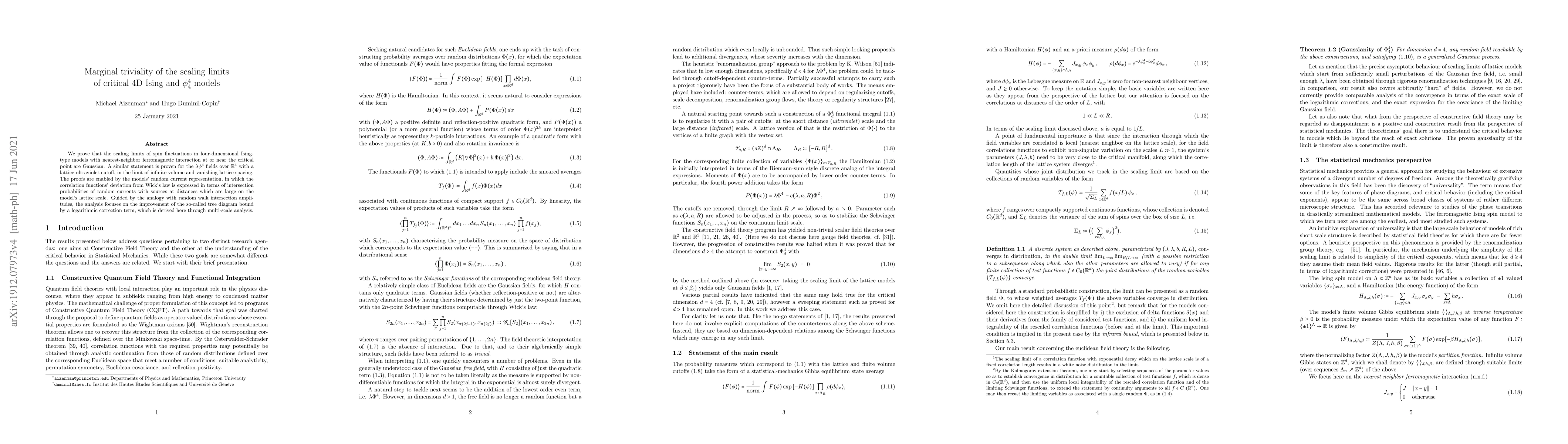 Researchers prove that spin fluctuations in 4D Ising models and a related field model have Gaussian scaling limits, indicating their behavior near the critical point can be predicted using statistical methods.
