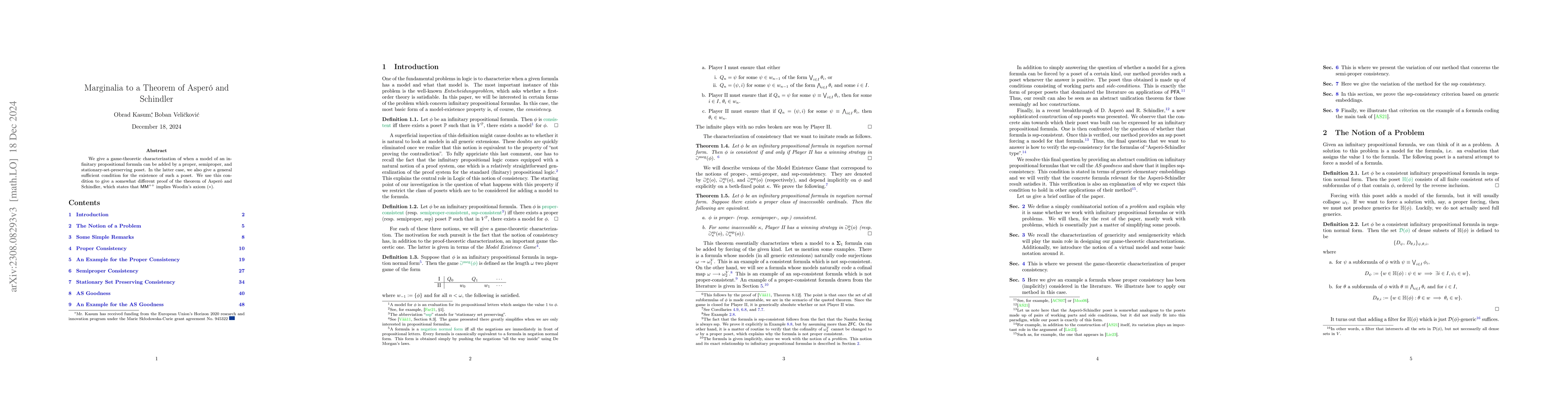 We describe a general method for adding a model of an infinitary propositional formula by stationary set preserving forcing. As a consequence we obtain a somewhat different proof of the Asper\'o-Schindler theorem stating that $\mathsf{MM}^{++}$ implies Woodin's axiom $(*)$.