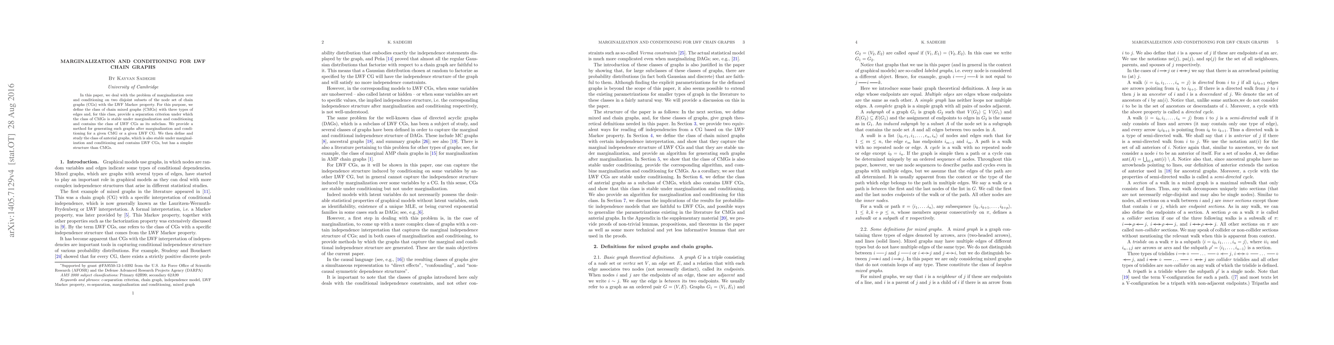 This paper explores marginalization and conditioning in chain graphs with the LWF Markov property, defining chain mixed graphs (CMGs) with three edge types and establishing a separation criterion for stability under these operations. It also introduces anterial graphs, a simpler subclass stable under the same operations.