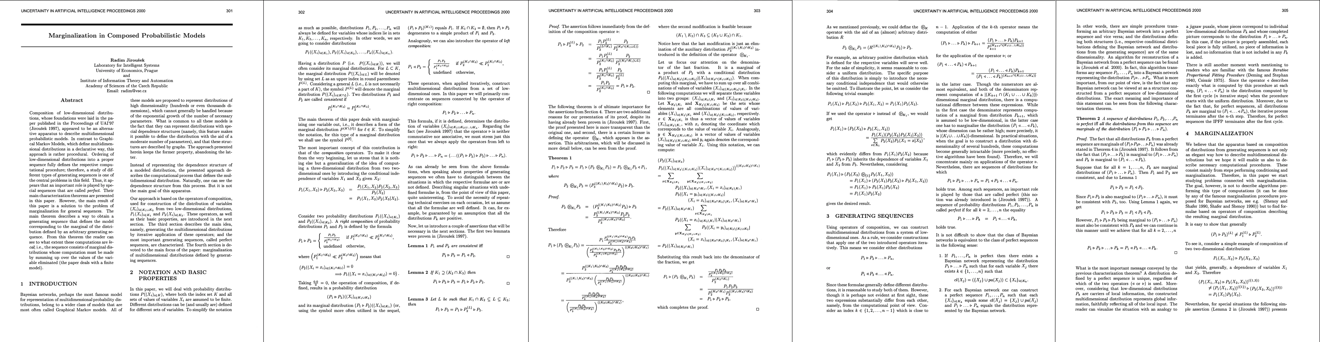 This paper presents a solution to the marginalization problem in composed probabilistic models, focusing on generating sequences that define the marginal distributions. It introduces perfect sequences and provides a theorem for obtaining a generating sequence corresponding to the marginal of an arbitrary sequence, highlighting the local nature of these computations.