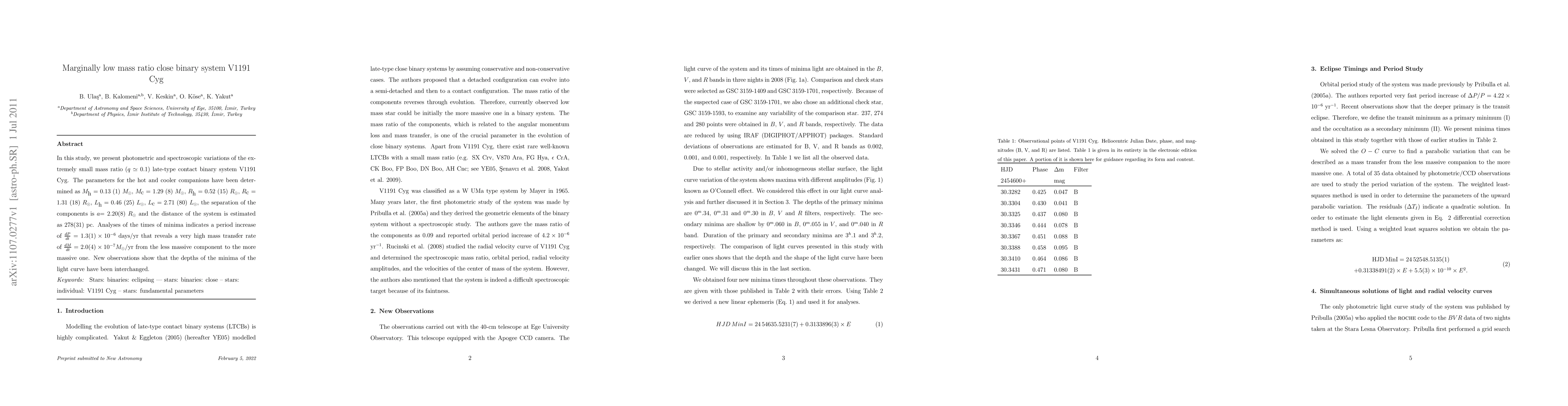 Researchers studied V1191 Cyg, a low-mass ratio binary system with extreme mass transfer, finding a high rate of mass loss from the less massive companion.