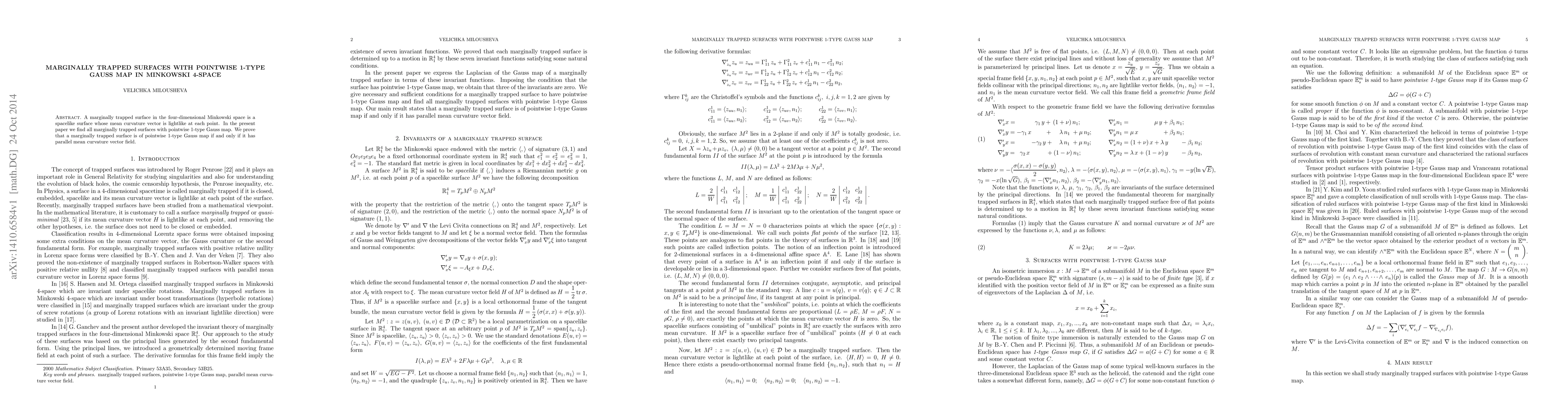 This paper identifies all marginally trapped surfaces in Minkowski 4-space that have a pointwise 1-type Gauss map, proving that such surfaces possess a parallel mean curvature vector field.