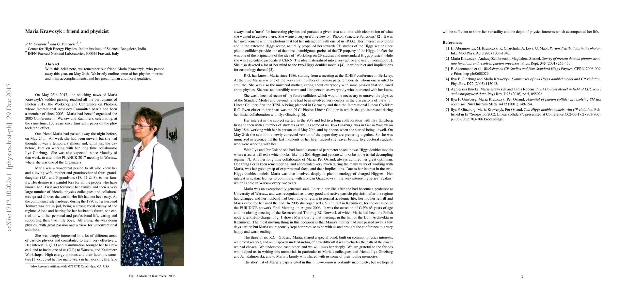 This paper remembers physicist Maria Krawczyk, highlighting her contributions to physics and celebrating her life with an appreciation of her human qualities.