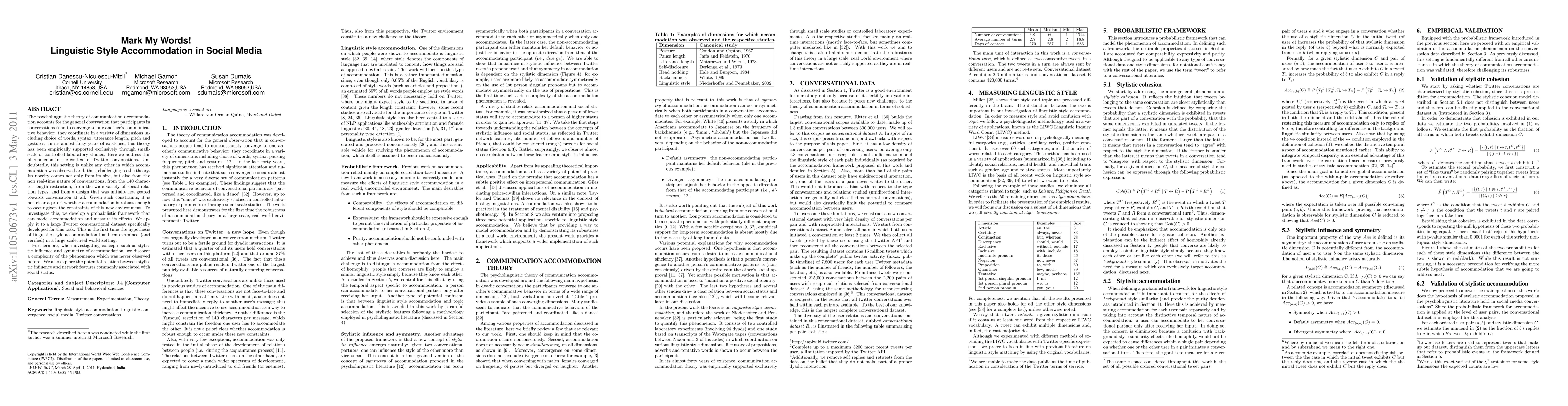 This paper investigates the communication accommodation theory in Twitter conversations, demonstrating for the first time its applicability in a large-scale, real-world setting. The findings reveal a complexity in linguistic style accommodation not previously observed, and explore the relationship between stylistic influence and social network features.