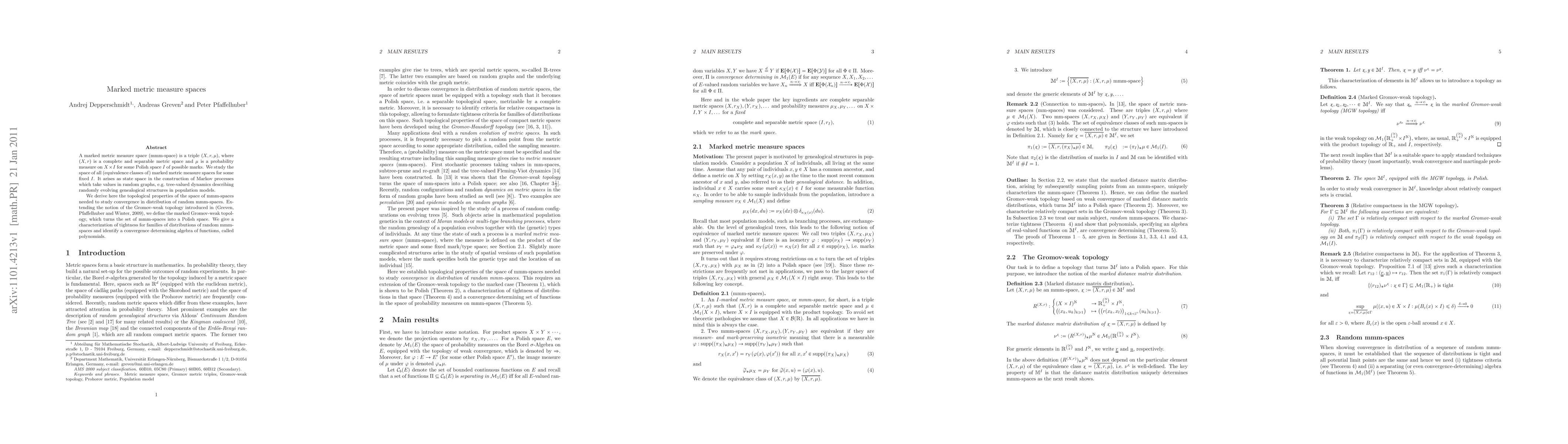 The paper introduces marked metric measure spaces (mmm-spaces) and studies their topological properties, defining the marked Gromov-weak topology to turn the set of mmm-spaces into a Polish space.