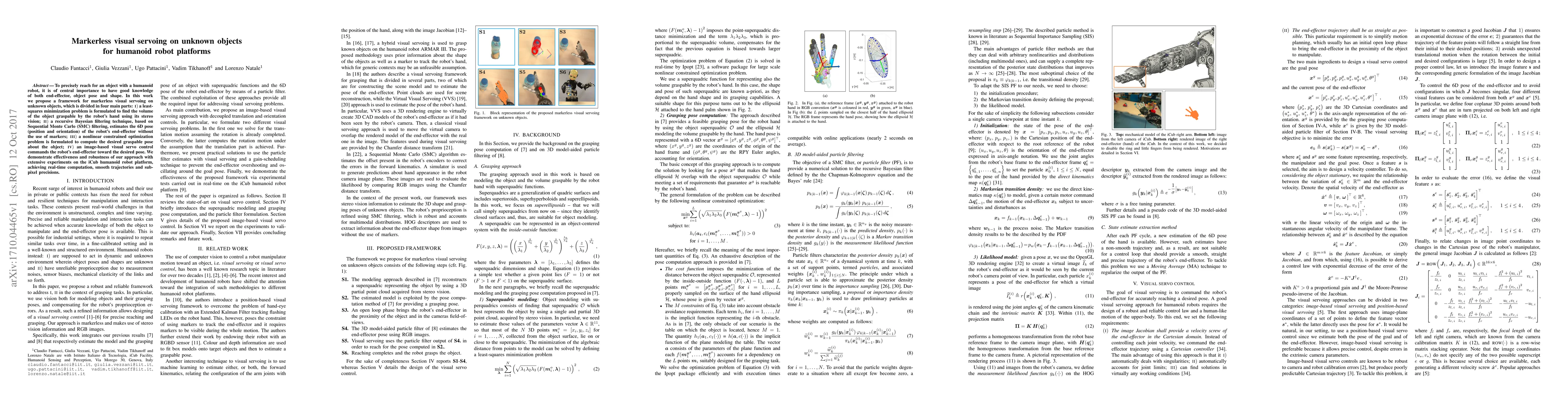 Researchers developed a framework for markerless visual servoing on unknown objects using stereo vision, Bayesian filtering, and nonlinear optimization to precisely reach for objects with humanoid robots.