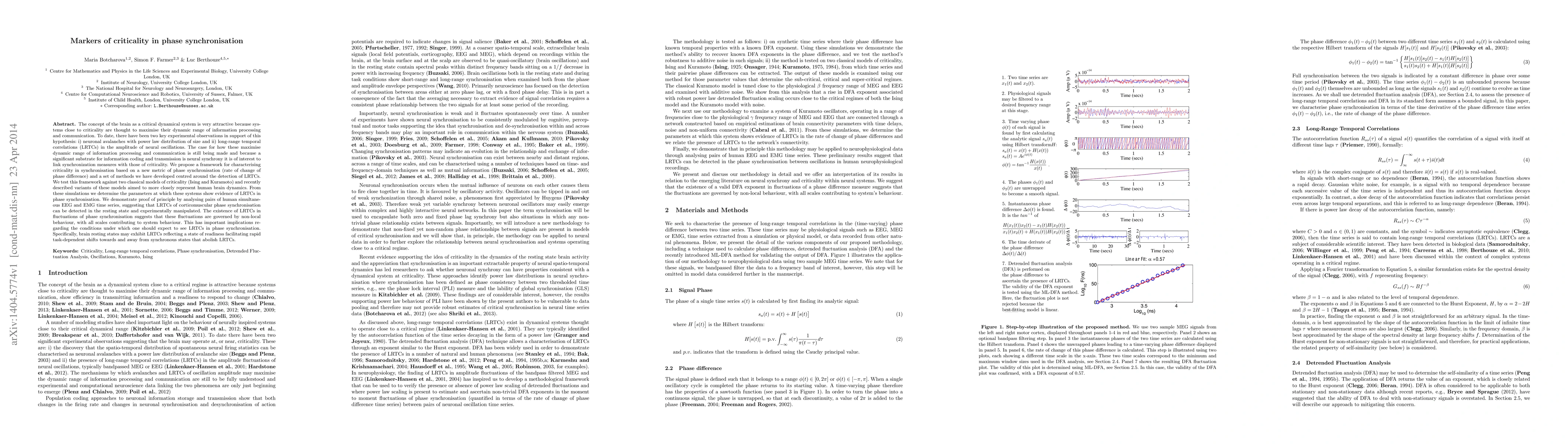 This paper proposes a framework to characterize criticality in neural synchronisation using a new metric of phase synchronisation and methods for detecting long-range temporal correlations (LRTCs). The authors test this framework against classical and human brain-like models, demonstrating that LRTCs in phase synchronisation suggest non-local behaviour, indicating readiness for rapid task-dependent shifts in brain states.