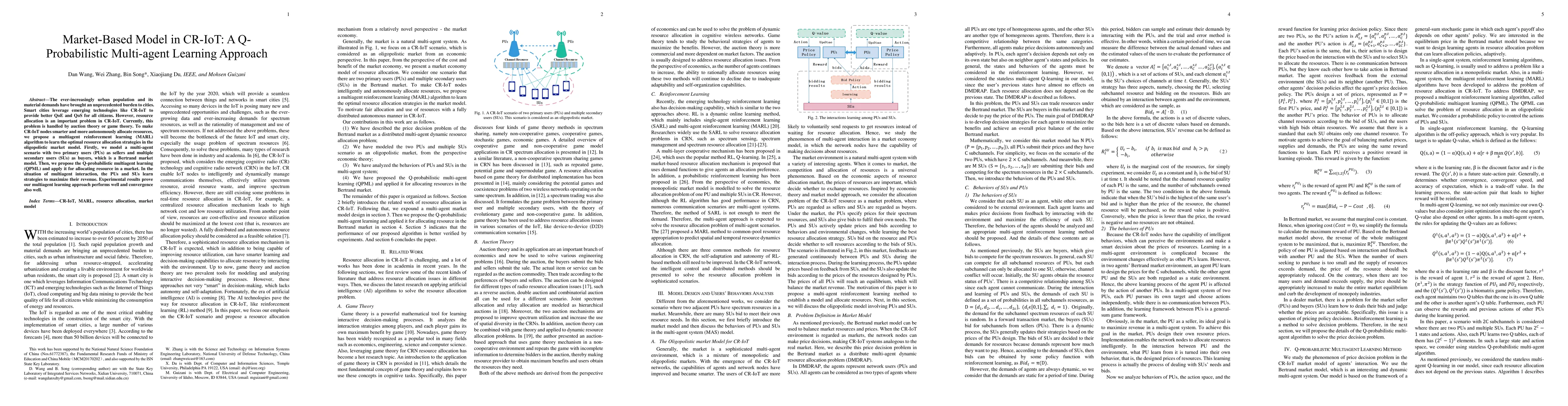 This research paper proposes a market-based model using Q-probabilistic multi-agent learning to optimize resource allocation in CR-WSN, achieving efficient spectrum utilization and benefiting primary users and secondary users alike.