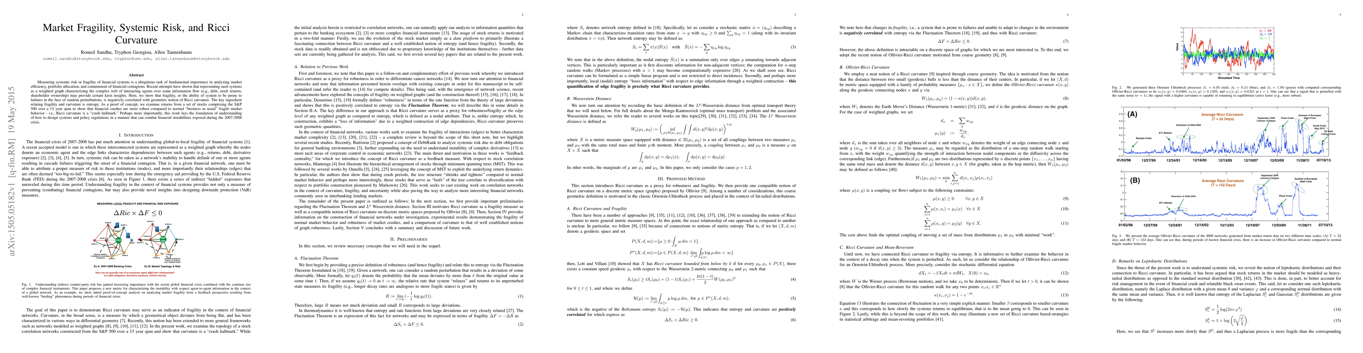 This paper explores the relationship between systemic risk in financial markets and Ricci curvature, demonstrating that higher Ricci curvature correlates with lower market fragility. The study uses entropy as a key link, showing that Ricci curvature can serve as a hallmark of financial crashes, thus providing a foundation for designing regulatory policies to mitigate financial instabilities.
