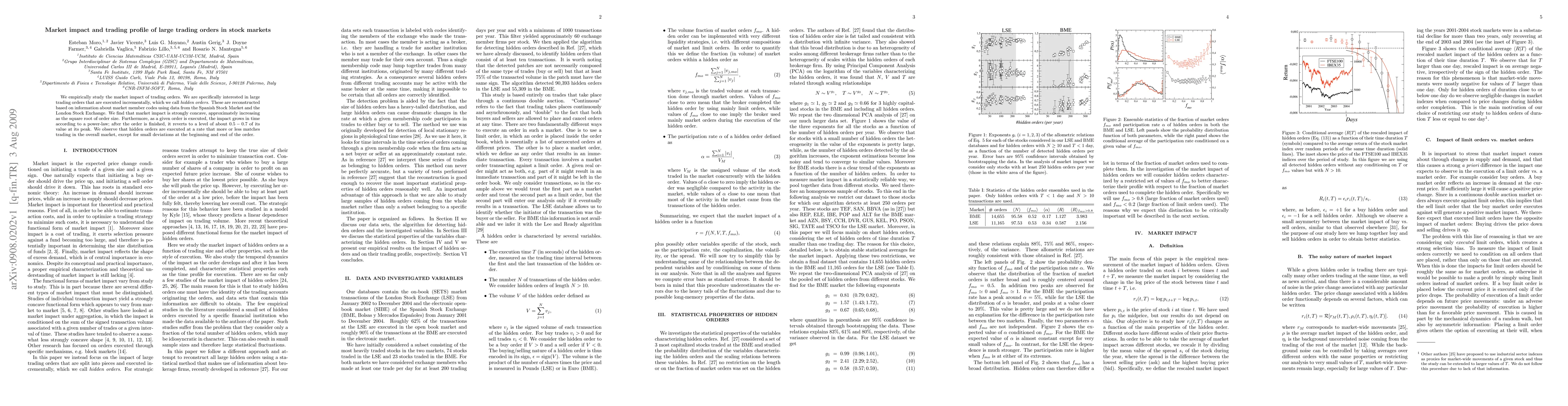 We empirically study the market impact of trading orders. We are specifically interested in large trading orders that are executed incrementally, which we call hidden orders. These are reconstructed based on information about market member codes using data from the Spanish Stock Market and the London Stock Exchange. We find that market impact is strongly concave, approximately increasing as the square root of order size. Furthermore, as a given order is executed, the impact grows in time according to a power-law; after the order is finished, it reverts to a level of about 0.5-0.7 of its value at its peak. We observe that hidden orders are executed at a rate that more or less matches trading in the overall market, except for small deviations at the beginning and end of the order.