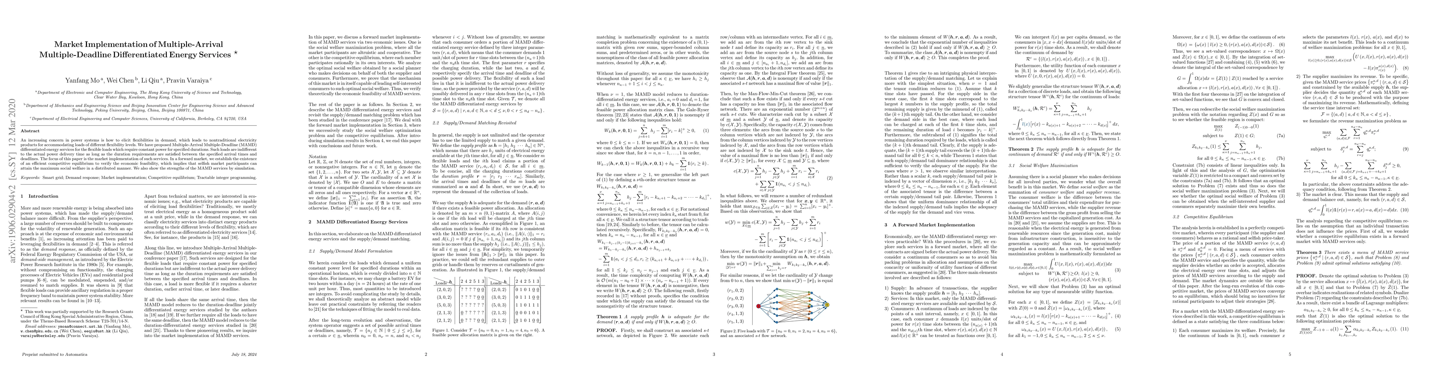 This paper proposes Multiple-Arrival Multiple-Deadline (MAMD) differentiated energy services to accommodate flexible loads in power systems. It demonstrates the market implementation and economic feasibility of these services through the existence of an efficient competitive equilibrium in a forward market.
