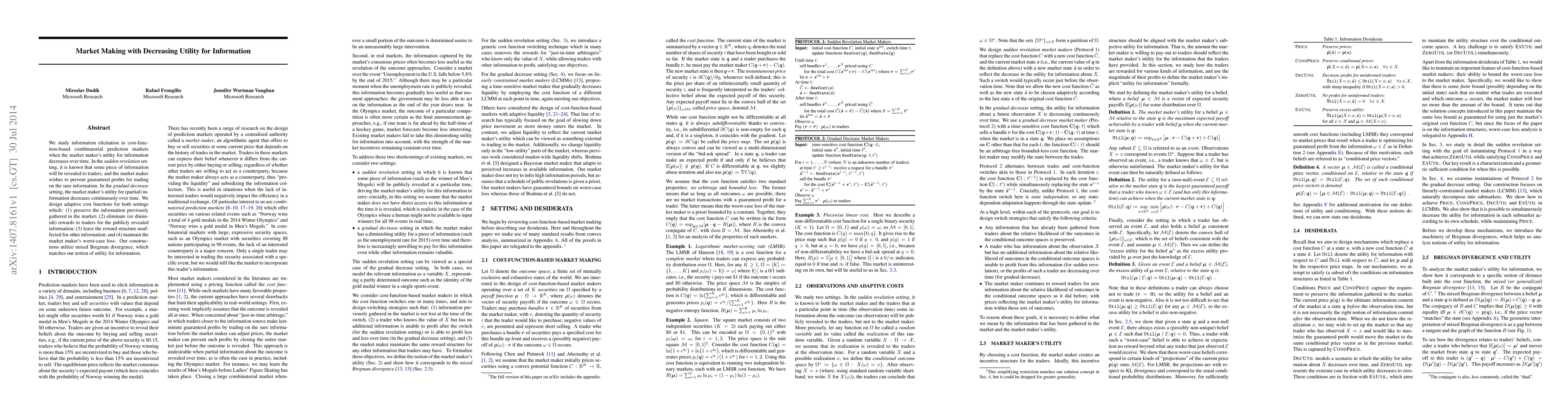 Market makers adapt their utility for information to prevent guaranteed profits on sure information while maintaining worst-case loss in cost-function-based prediction markets. This adaptation preserves previously gathered information and adjusts rewards for publicly revealed info.