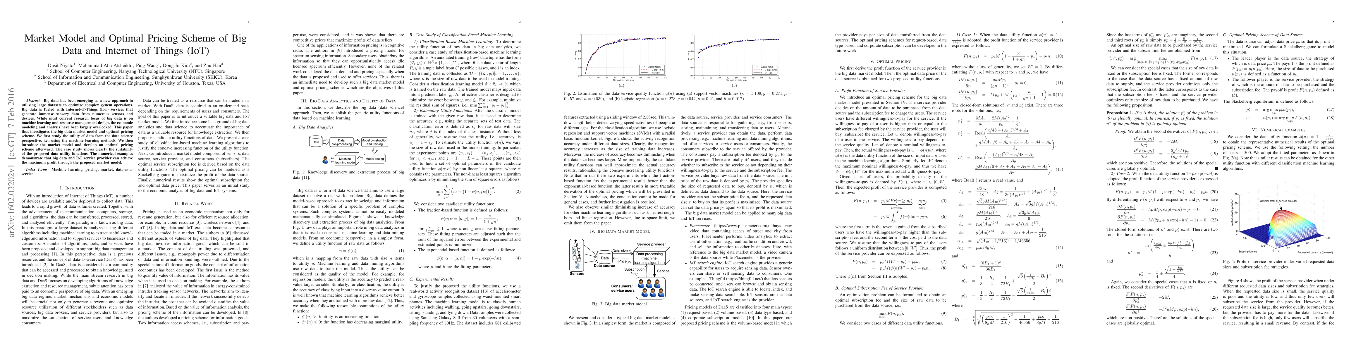 This paper explores the economic modeling and optimal pricing scheme for big data and IoT services, emphasizing data utility from machine learning perspectives. It proposes a market model and pricing scheme that maximizes profit for service providers, validated through case studies and numerical examples.