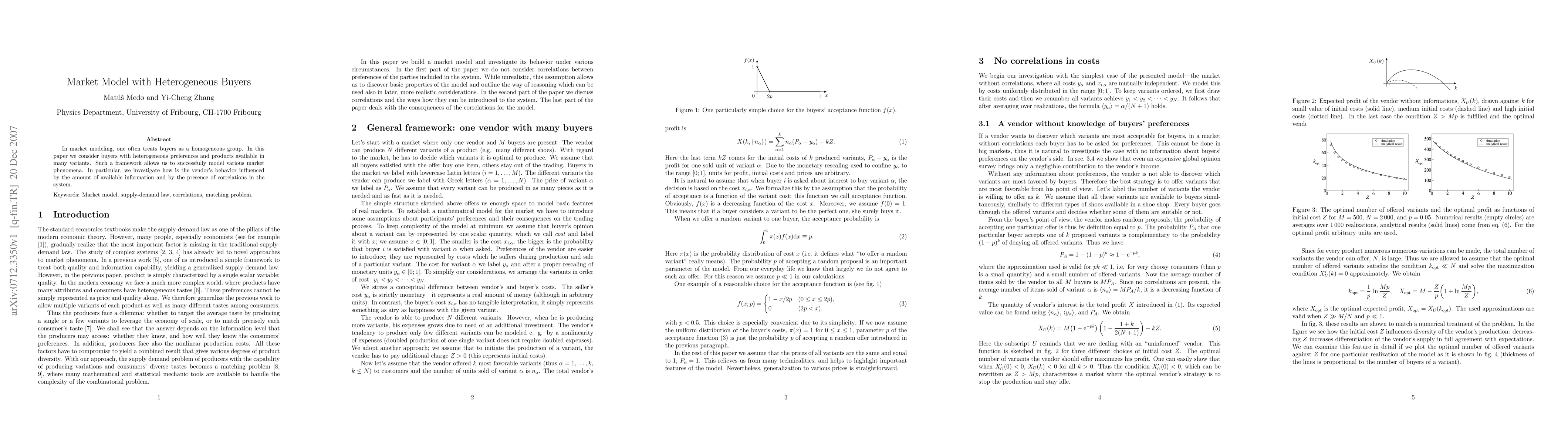 This paper models market behavior with heterogeneous buyers who have different preferences for products in various variants. It investigates how vendor behavior changes with available information and system correlations.