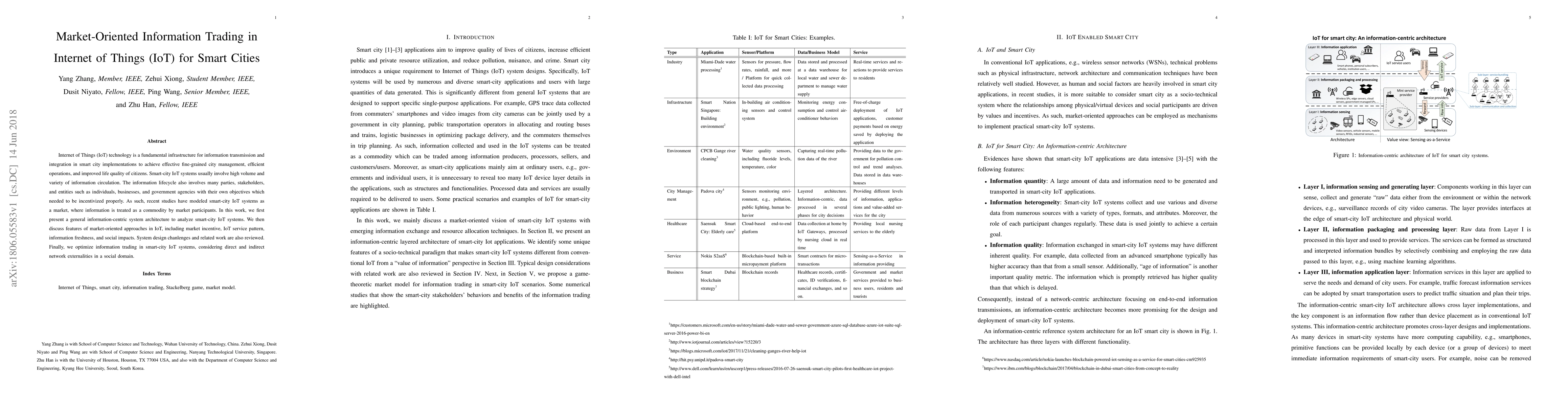 This paper explores market-oriented information trading in IoT for smart cities, presenting a system architecture to analyze smart-city IoT systems and discussing market-oriented features like incentives, IoT service patterns, and information freshness. It also optimizes information trading by considering network externalities in a social domain.