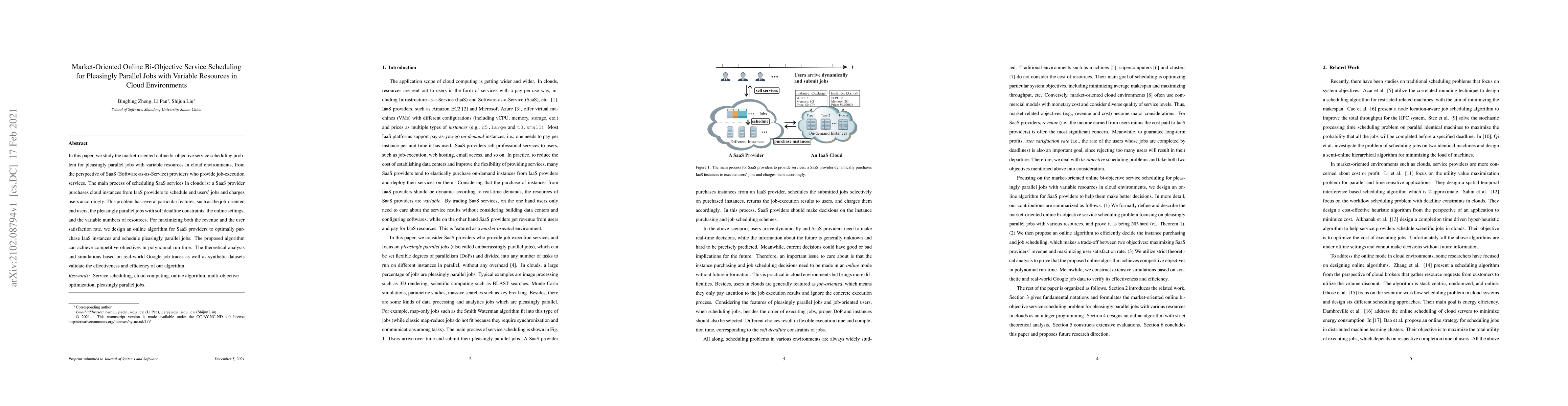 This paper proposes an online bi-objective scheduling algorithm for optimizing revenue and user satisfaction in SaaS providers managing pleasingly parallel jobs with variable resources in cloud environments. The algorithm achieves competitive performance in polynomial time, validated by real-world and synthetic data simulations.