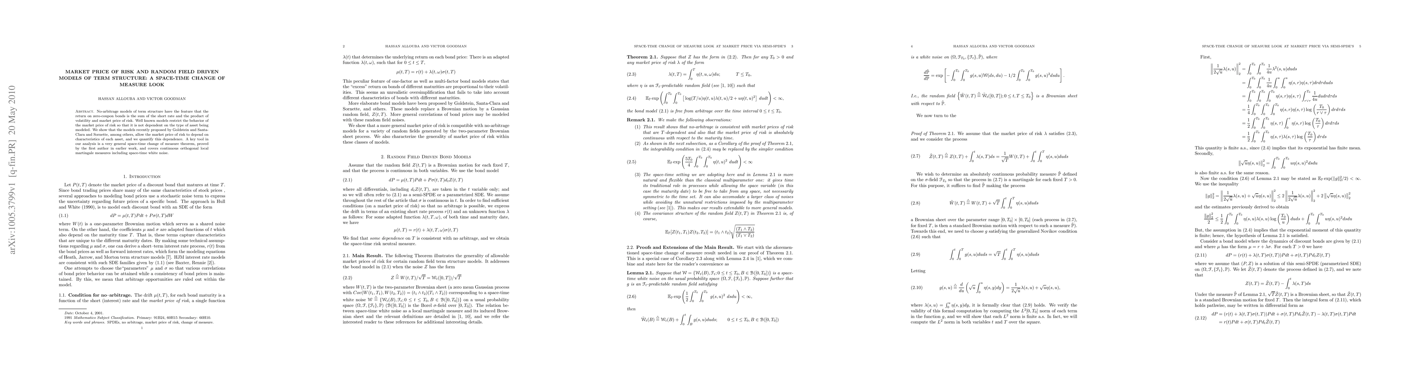 No-arbitrage models of term structure have the feature that the return on zero-coupon bonds is the sum of the short rate and the product of volatility and market price of risk. Well known models restrict the behavior of the market price of risk so that it is not dependent on the type of asset being modeled. We show that the models recently proposed by Goldstein and Santa-Clara and Sornette, among others, allow the market price of risk to depend on characteristics of each asset, and we quantify this dependence. A key tool in our analysis is a very general space-time change of measure theorem, proved by the first author in earlier work, and covers continuous orthogonal local martingale measures including space-time white noise.