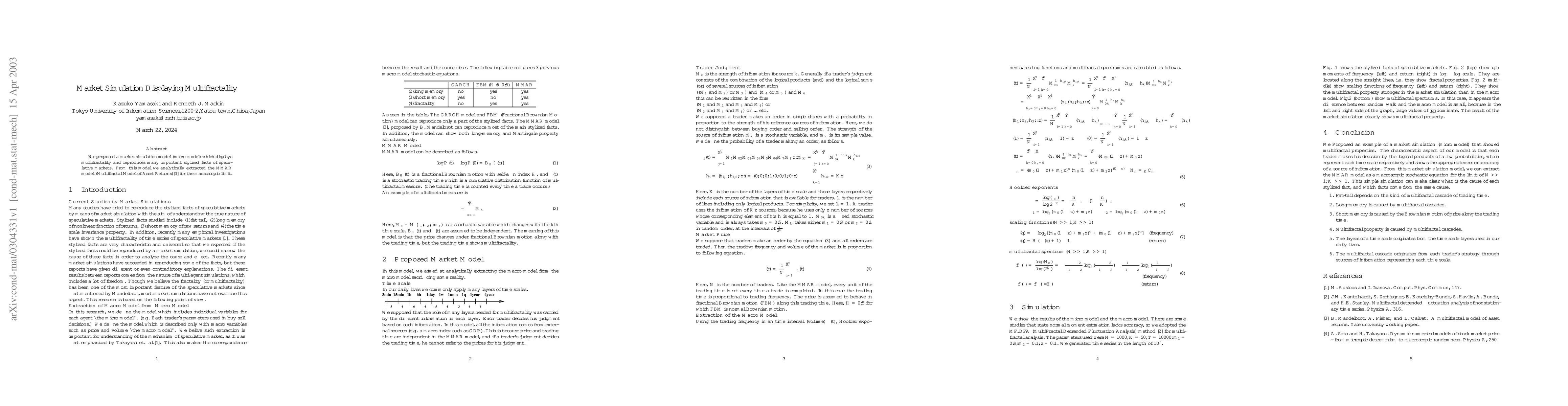 We proposed a market simulation model (micro model) which displays multifractality and reproduces many important stylized facts of speculative markets. From this model we analytically extracted the MMAR model (Multifractal Model of Asset Returns) for the macroscopic limit.