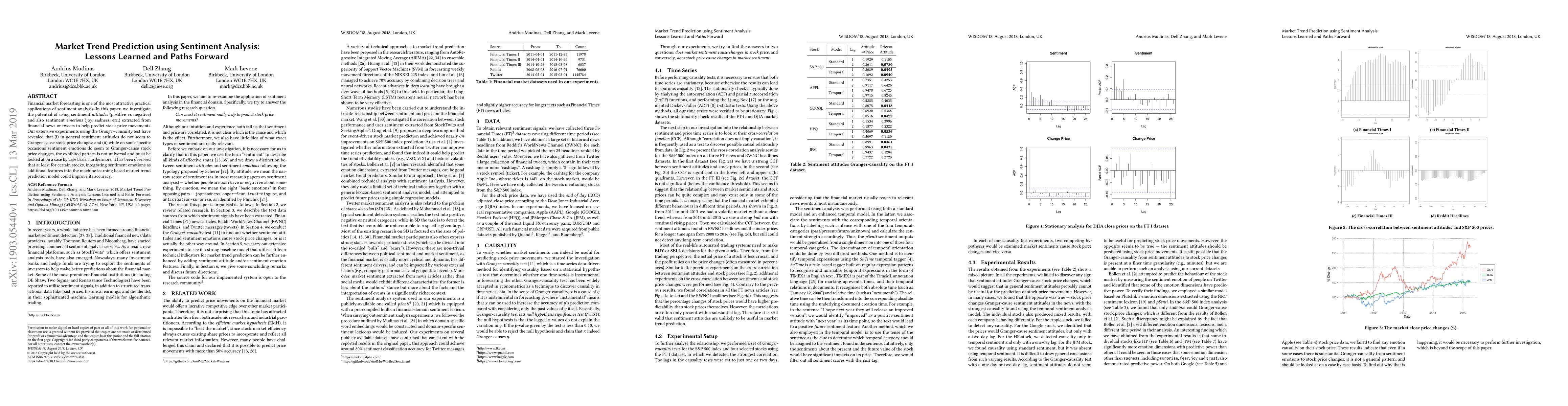 This paper explores the use of sentiment analysis for financial market trend prediction, finding that while sentiment attitudes generally do not predict stock price changes, specific sentiment emotions can on occasion, though not universally. Integrating sentiment emotions as features in machine learning models can enhance prediction accuracy for certain stocks.