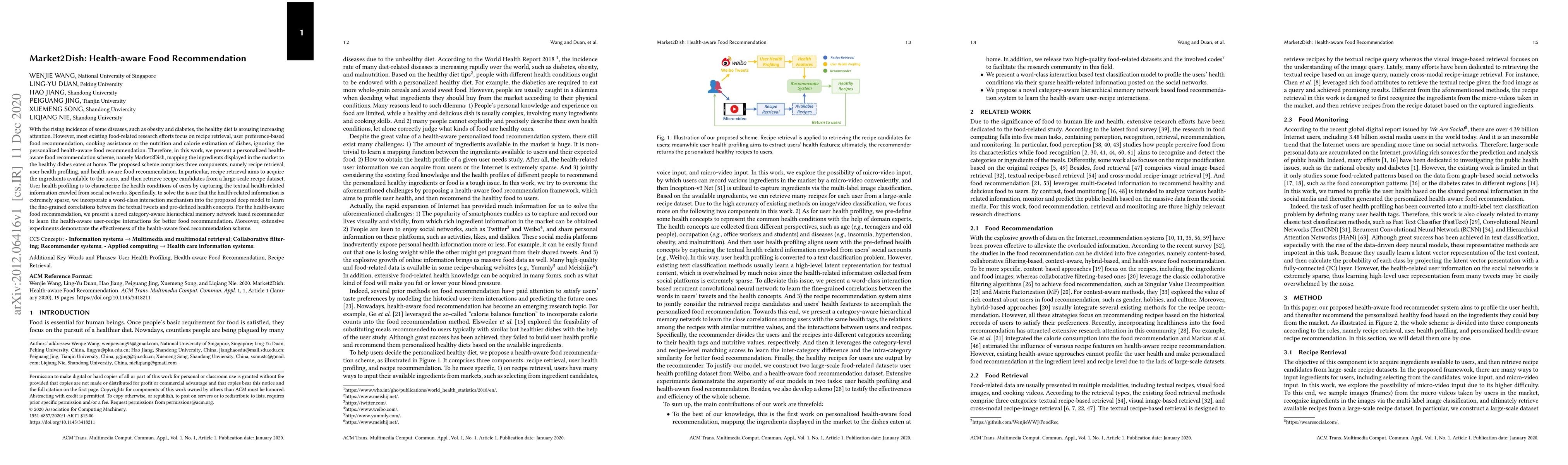 A new food recommendation scheme called Market2Dish aims to provide personalized healthy dish suggestions based on users' health conditions and available ingredients.