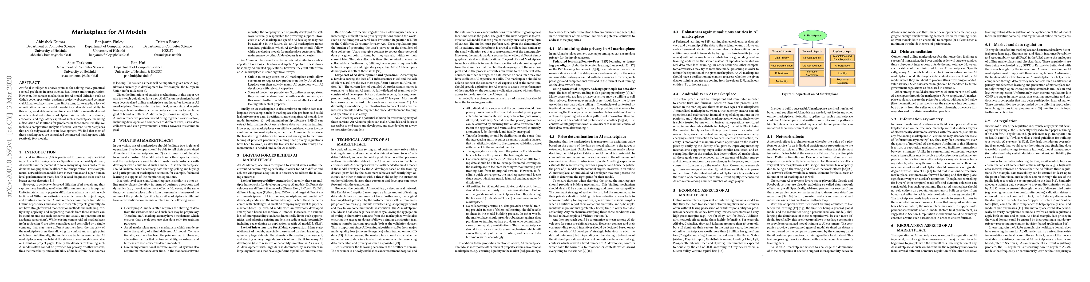 A new decentralized online marketplace for AI models is proposed to address limitations of current mechanisms such as lack of monetization methods and model traceability.