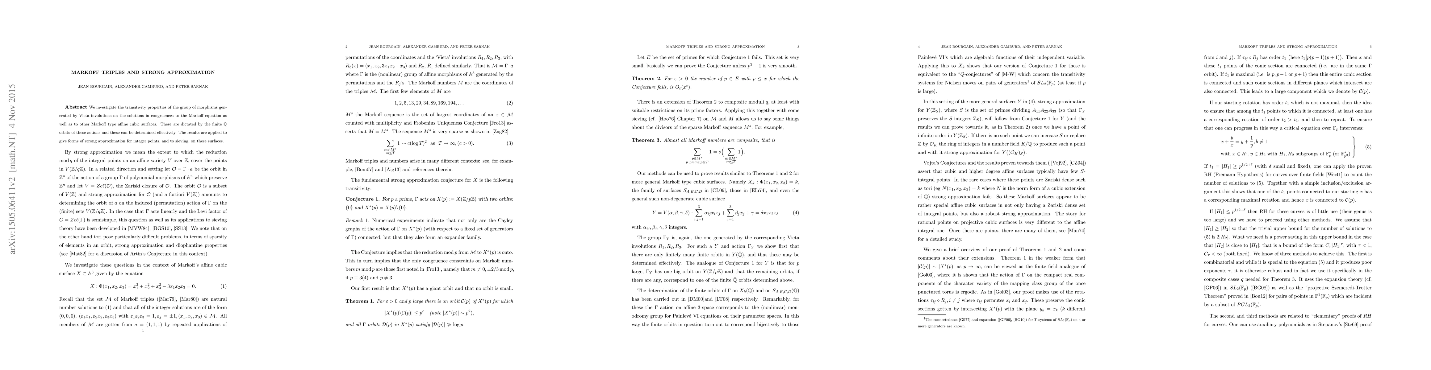 We investigate the transitivity properties of the group of morphisms generated by Vieta involutions on the solutions in congruences to the Markoff equation as well as to other Markoff type affine cubic surfaces. These are dictated by the finite $\bar{\mathbb Q}$ orbits of these actions and these can be determined effectively. The results are applied to give forms of strong approximation for integer points, and to sieving, on these surfaces