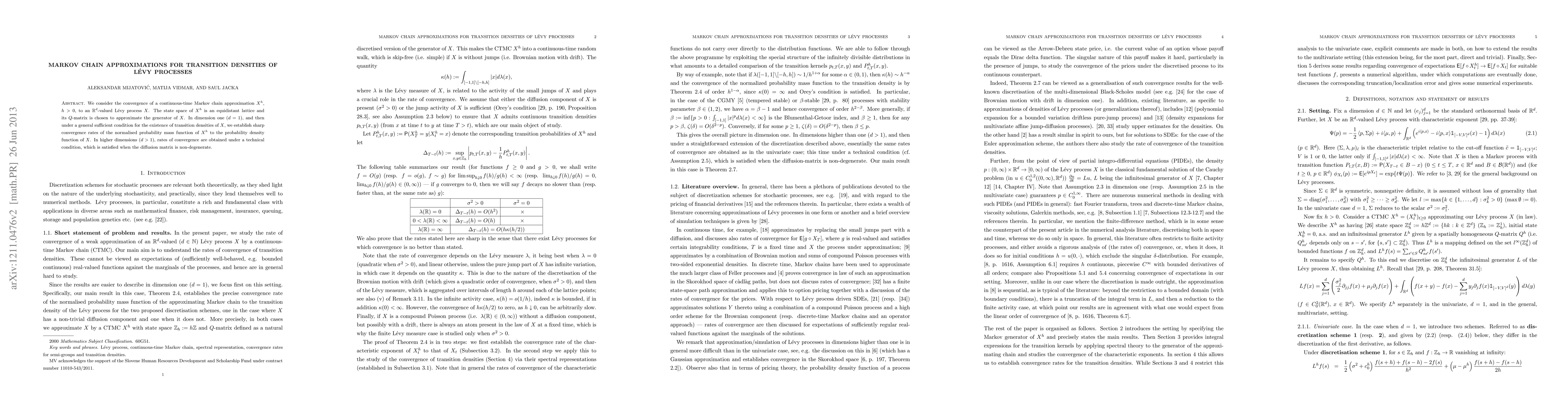 This research paper explores how a Markov chain approximation converges to a Levy process, establishing convergence rates in one and higher dimensions under certain conditions.