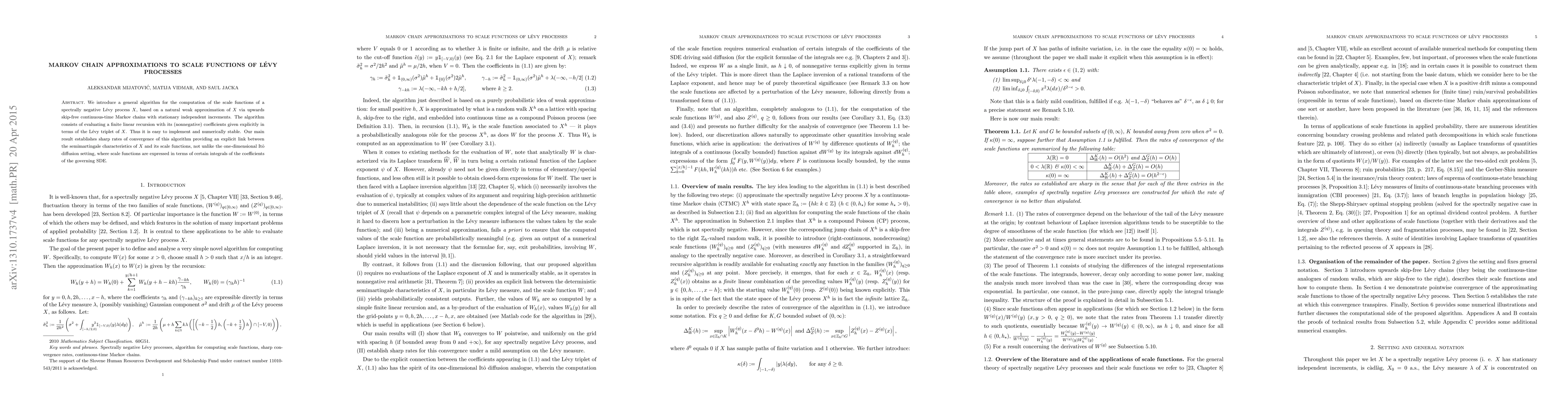 The paper presents a novel algorithm for approximating scale functions of spectrally negative Lévy processes, grounded in the theory of Markov chains and Lévy processes, with explicit error bounds and sharp convergence rates.