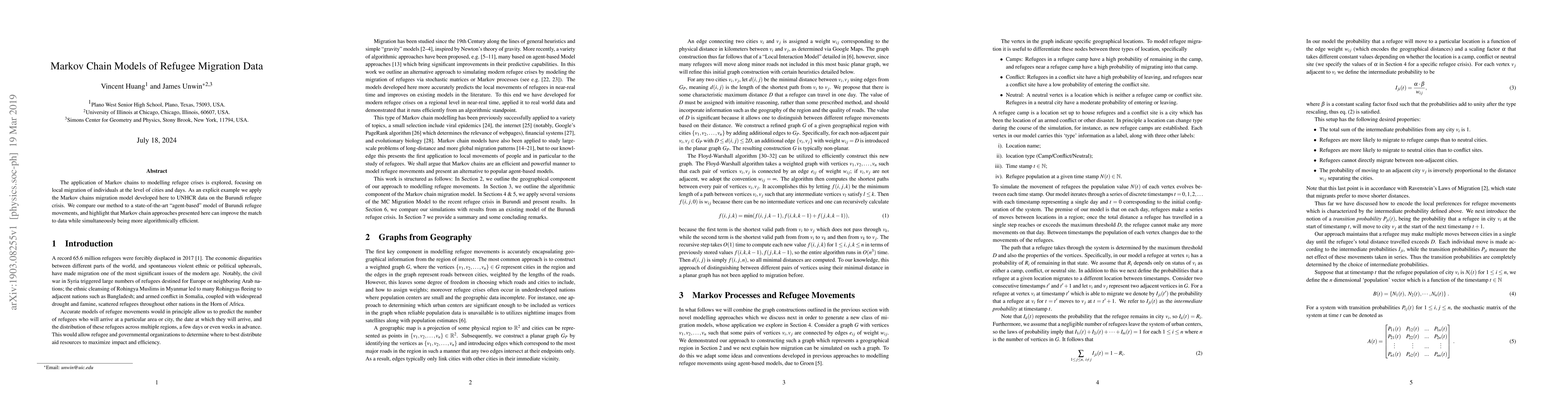 The study compared the method to a state-of-the-art agent-based model and found that Markov chains can better predict refugee movements.