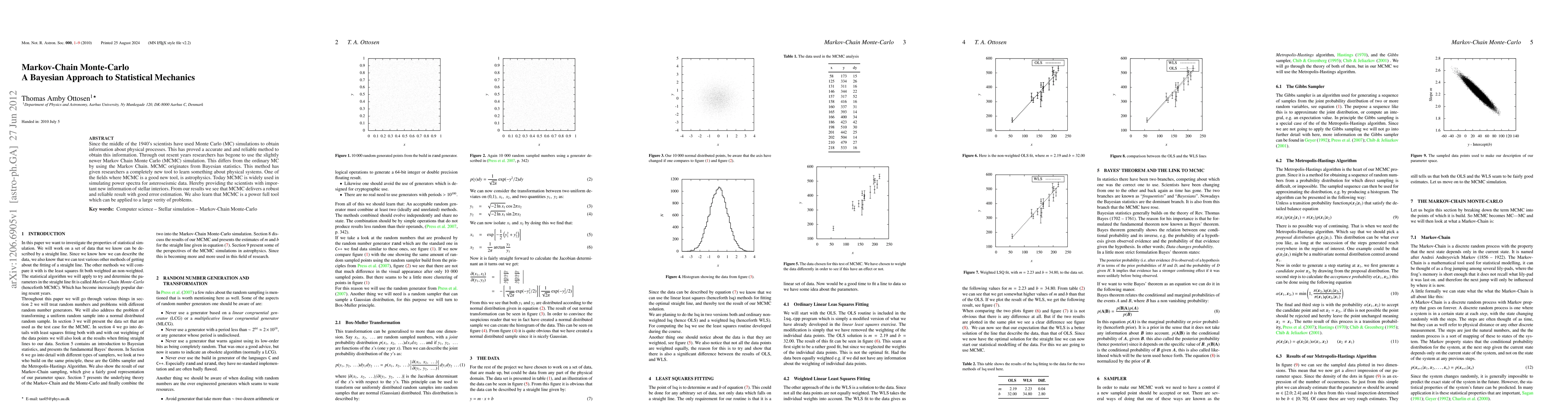 Since the middle of the 1940's scientists have used Monte Carlo (MC) simulations to obtain information about physical processes. This has proved a accurate and and reliable method to obtain this information. Through out resent years researchers has begone to use the slightly newer Markov Chain Monte Carlo (MCMC) simulation. This differs from the ordinary MC by using the Markov Chain. MCMC originates from Bayesian statistics. This method has given researchers a completely new tool to learn something about physical systems. One of the fields where MCMC is a good new tool, is astrophysics. Today MCMC is widely used in simulating power spectra for asteroseismic data. Hereby providing the scientists with important new information of stellar interiors. From our results we see that MCMC delivers a robust and reliable result with good error estimation. We also learn that MCMC is a power full tool which can be applied to a large verity of problems.