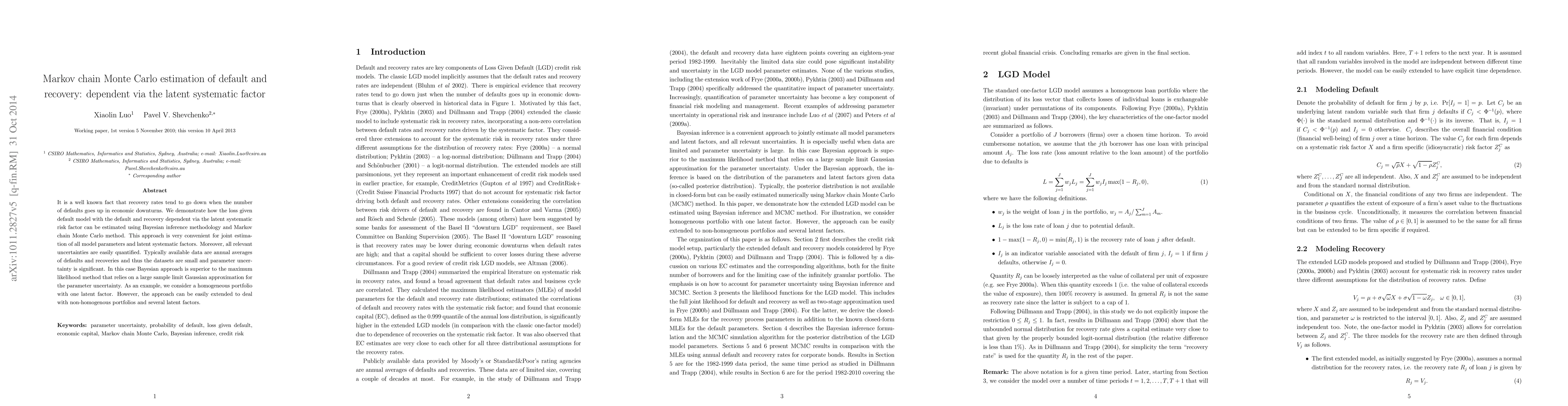 It is a well known fact that recovery rates tend to go down when the number of defaults goes up in economic downturns. We demonstrate how the loss given default model with the default and recovery dependent via the latent systematic risk factor can be estimated using Bayesian inference methodology and Markov chain Monte Carlo method. This approach is very convenient for joint estimation of all model parameters and latent systematic factors. Moreover, all relevant uncertainties are easily quantified. Typically available data are annual averages of defaults and recoveries and thus the datasets are small and parameter uncertainty is significant. In this case Bayesian approach is superior to the maximum likelihood method that relies on a large sample limit Gaussian approximation for the parameter uncertainty. As an example, we consider a homogeneous portfolio with one latent factor. However, the approach can be easily extended to deal with non-homogenous portfolios and several latent factors.