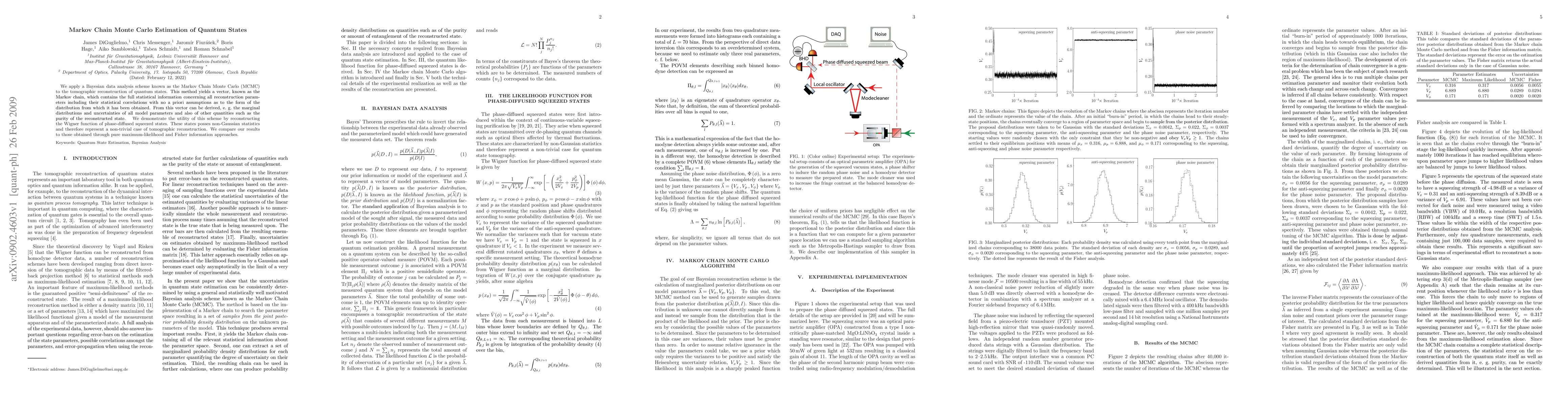 We apply a Bayesian data analysis scheme known as the Markov Chain Monte Carlo (MCMC) to the tomographic reconstruction of quantum states. This method yields a vector, known as the Markov chain, which contains the full statistical information concerning all reconstruction parameters including their statistical correlations with no a priori assumptions as to the form of the distribution from which it has been obtained. From this vector can be derived, e. g. the marginal distributions and uncertainties of all model parameters and also of other quantities such as the purity of the reconstructed state. We demonstrate the utility of this scheme by reconstructing the Wigner function of phase-diffused squeezed states. These states posses non-Gaussian statistics and therefore represent a non-trivial case of tomographic reconstruction. We compare our results to those obtained through pure maximum-likelihood and Fisher information approaches.