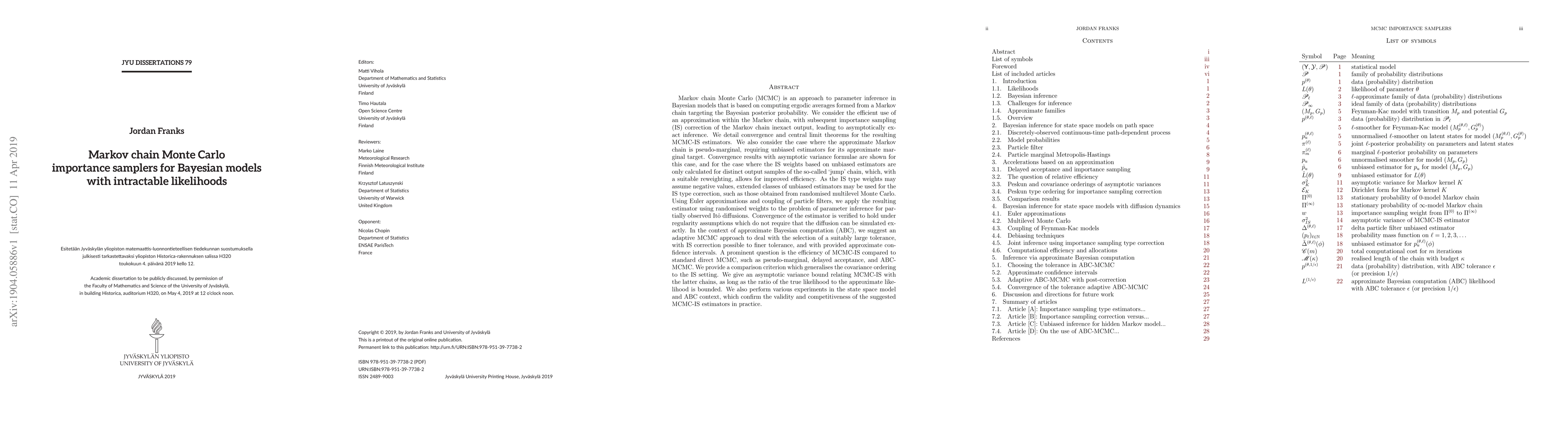 This paper proposes an importance sampling method within Markov chain Monte Carlo (MCMC) to correct for inexact outputs, achieving asymptotically exact inference. The authors detail convergence and central limit theorems for the resulting MCMC-IS estimators, including the use of unbiased estimators for pseudo-marginal chains and adaptive MCMC for approximate Bayesian computation. They compare the efficiency of MCMC-IS to standard MCMC methods and provide a criterion for comparison.