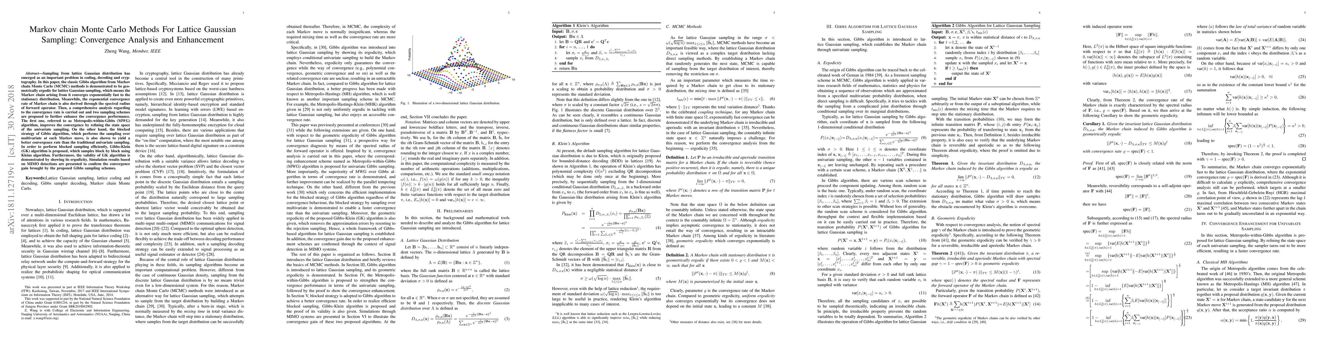 This paper demonstrates the geometric ergodicity of the Gibbs algorithm for lattice Gaussian sampling and derives its exponential convergence rate. It proposes two enhanced sampling schemes: the Metropolis-within-Gibbs algorithm and the blocked Gibbs sampling with the Gibbs-Klein method, both showing improved convergence rates, validated through MIMO detection simulations.