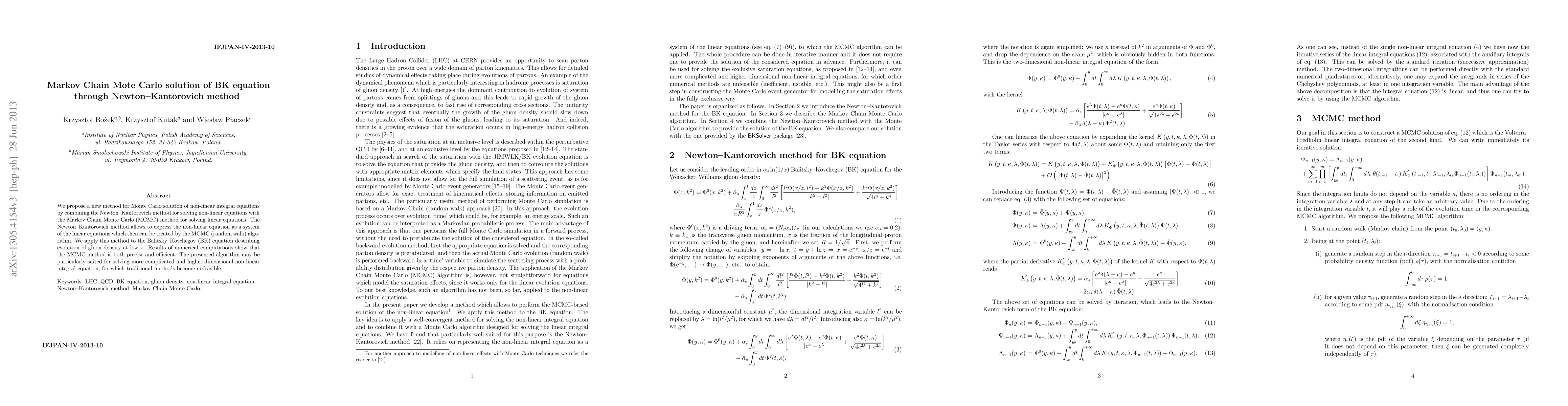 We propose a new method for Monte Carlo solution of non-linear integral equations by combining the Newton-Kantorovich method for solving non-linear equations with the Markov Chain Monte Carlo (MCMC) method for solving linear equations. The Newton-Kantorovich method allows to express the non-linear equation as a system of the linear equations which then can be treated by the MCMC (random walk) algorithm. We apply this method to the Balitsky-Kovchegov (BK) equation describing evolution of gluon density at low x. Results of numerical computations show that the MCMC method is both precise and efficient. The presented algorithm may be particularly suited for solving more complicated and higher-dimensional non-linear integral equation, for which traditional methods become unfeasible.