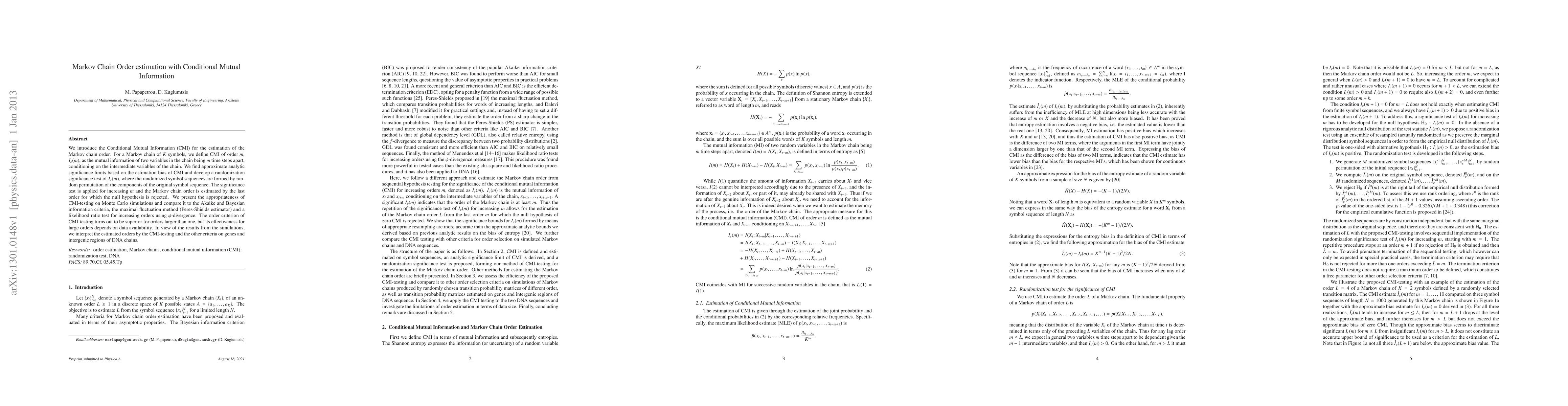 A new method called Conditional Mutual Information (CMI) is introduced to estimate Markov chain order, outperforming existing methods for large orders and showing promise in analyzing DNA sequences.