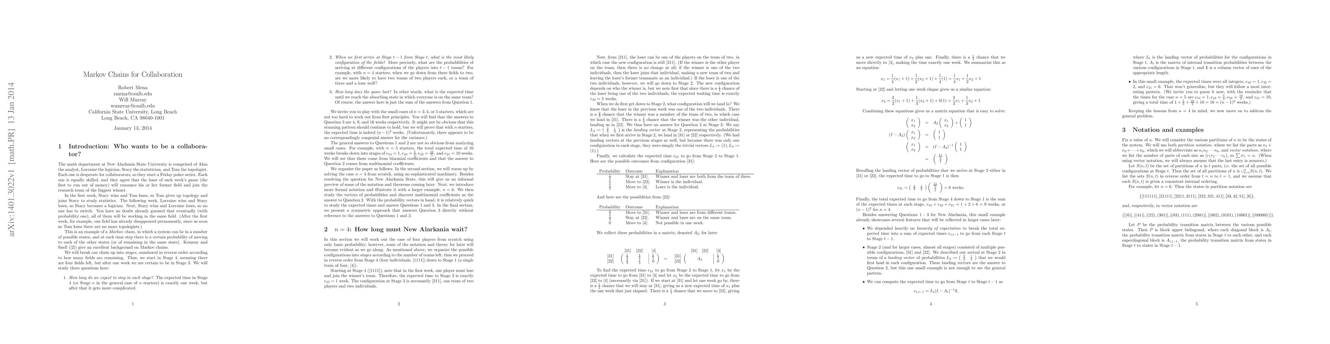 Researchers used Markov chains to study how teams of players merge in a random process, finding that the expected time until complete team fusion is (n-1)^2 steps.