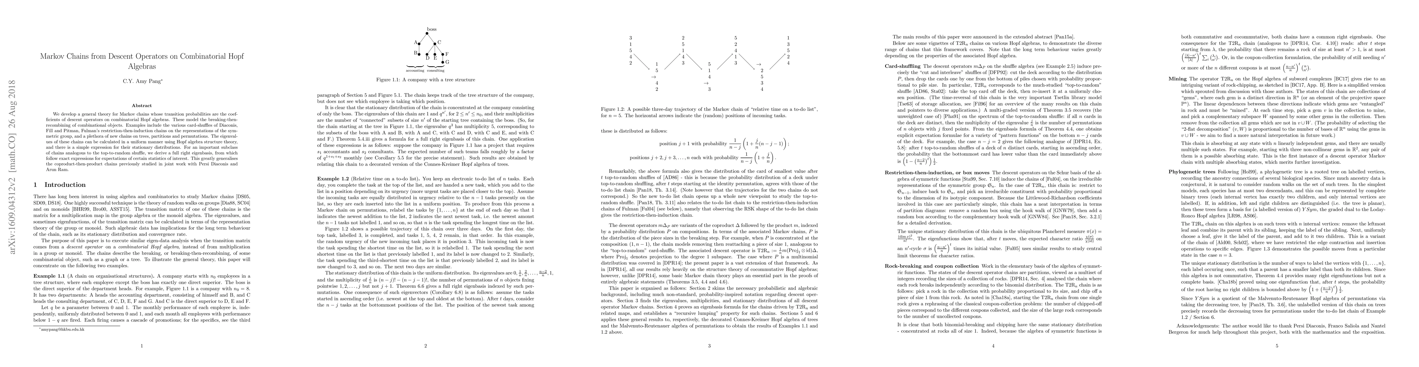 This paper develops a theory for Markov chains based on descent operators on combinatorial Hopf algebras, modeling the breaking and recombining of combinatorial objects. It provides a uniform method for calculating eigenvalues and stationary distributions, and generalizes previous work on coproduct-then-product chains.