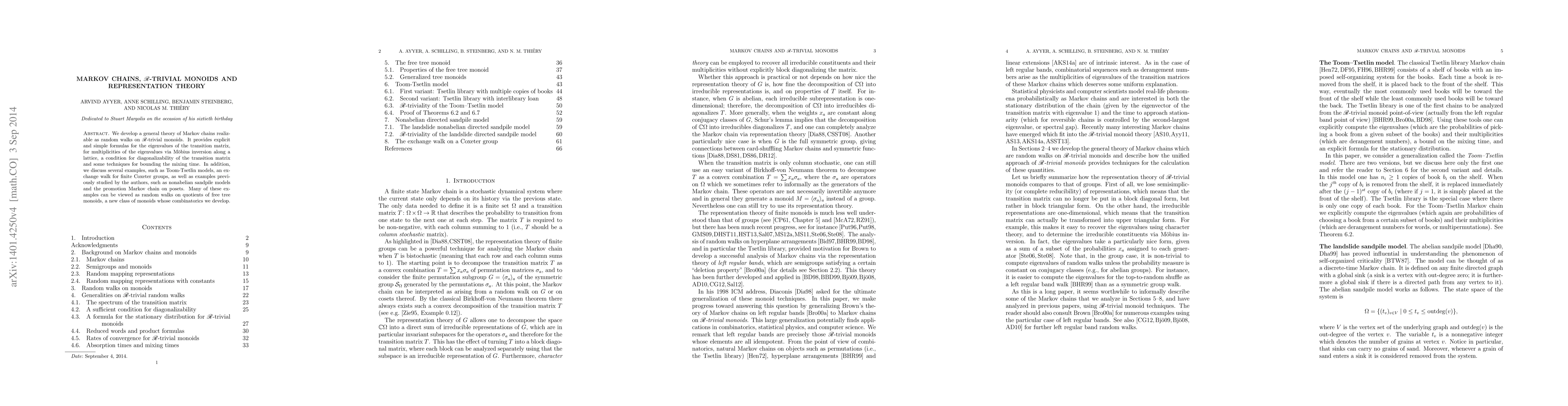 This paper develops a theory for Markov chains modeled on $\mathscr R$-trivial monoids, providing formulas for eigenvalues, multiplicities, and conditions for diagonalizability. It also introduces new techniques for bounding mixing times and explores examples like Toom-Tsetlin models and nonabelian sandpile models.