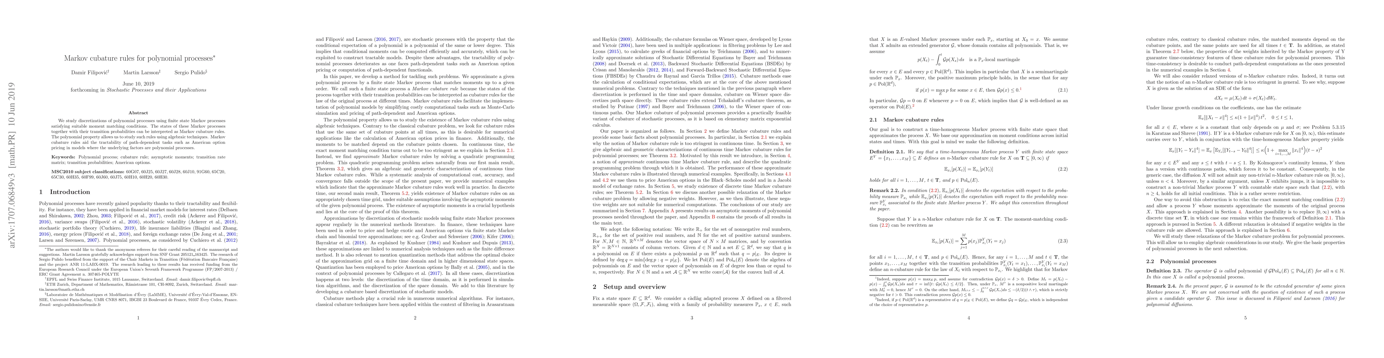 The paper studies discretizations of polynomial processes using finite state Markov processes with suitable moment matching conditions, interpreting states and transition probabilities as Markov cubature rules. Algebraic techniques are employed due to the polynomial property, aiding tractability in path-dependent tasks like American option pricing in models with polynomial factor processes.