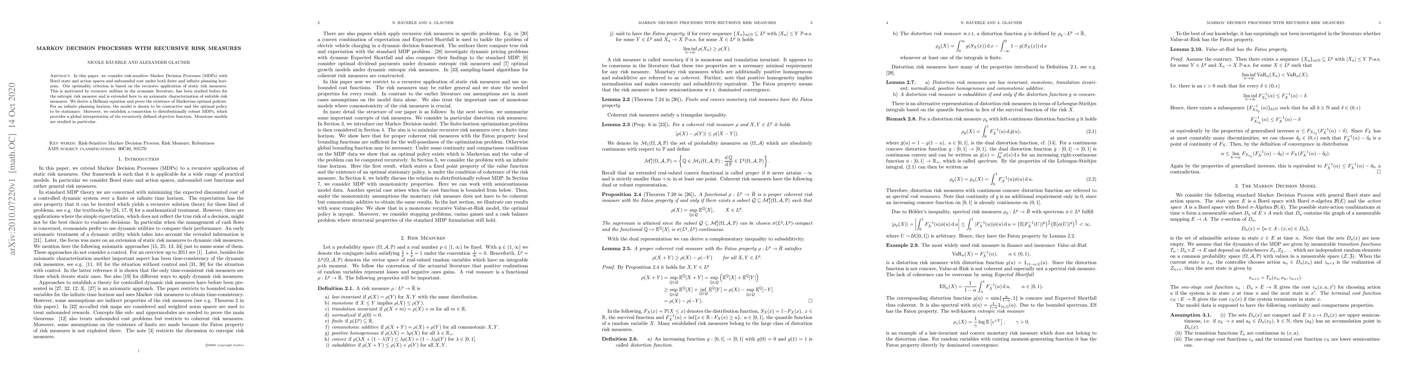 This paper studies risk-sensitive Markov Decision Processes (MDPs) using recursive risk measures, deriving a Bellman equation and proving the existence of optimal policies. For infinite horizons, the model is shown to be contractive with stationary optimal policies, and connections to distributionally robust MDPs are established.