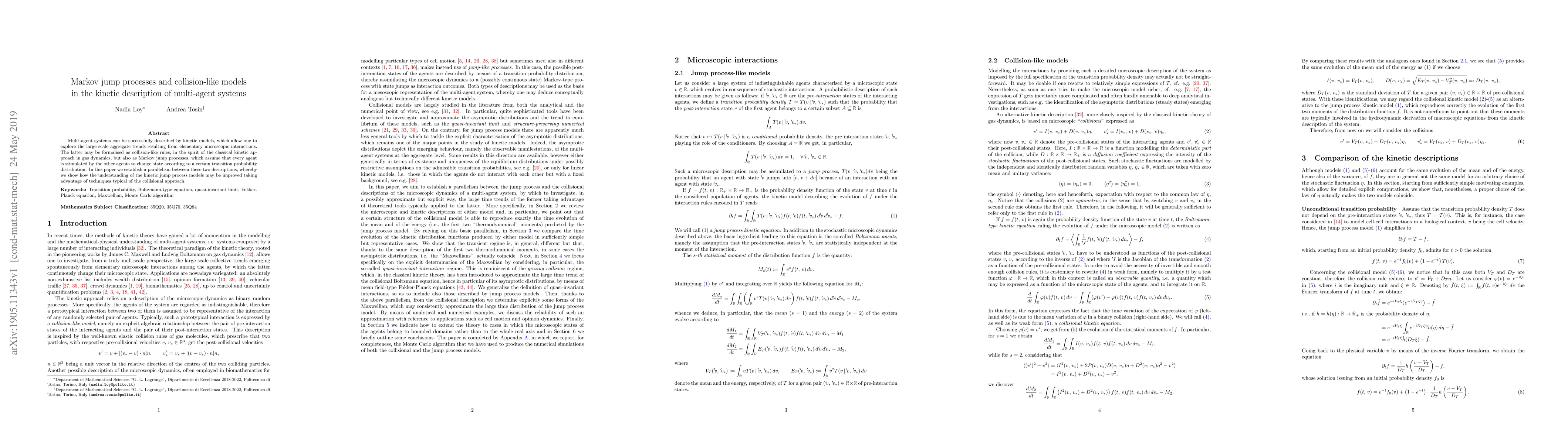 Multi-agent systems can be successfully described by kinetic models, which allow one to explore the large scale aggregate trends resulting from elementary microscopic interactions. The latter may be formalised as collision-like rules, in the spirit of the classical kinetic approach in gas dynamics, but also as Markov jump processes, which assume that every agent is stimulated by the other agents to change state according to a certain transition probability distribution. In this paper we establish a parallelism between these two descriptions, whereby we show how the understanding of the kinetic jump process models may be improved taking advantage of techniques typical of the collisional approach.