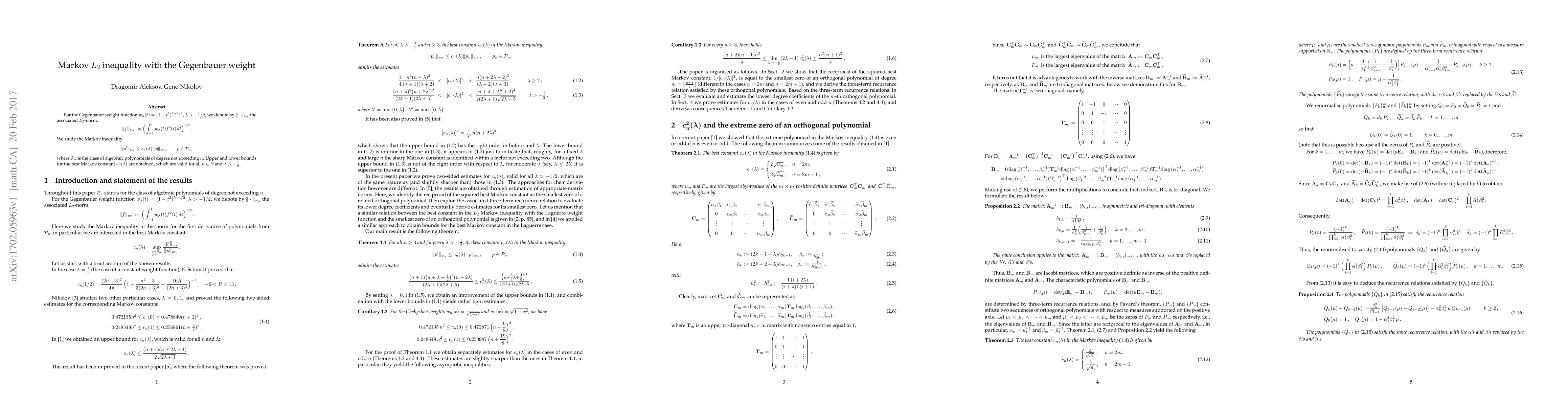 A research paper establishes upper and lower bounds for Markov constants in the context of Gegenbauer weight functions, providing insight into the relationship between polynomial norms and derivatives.