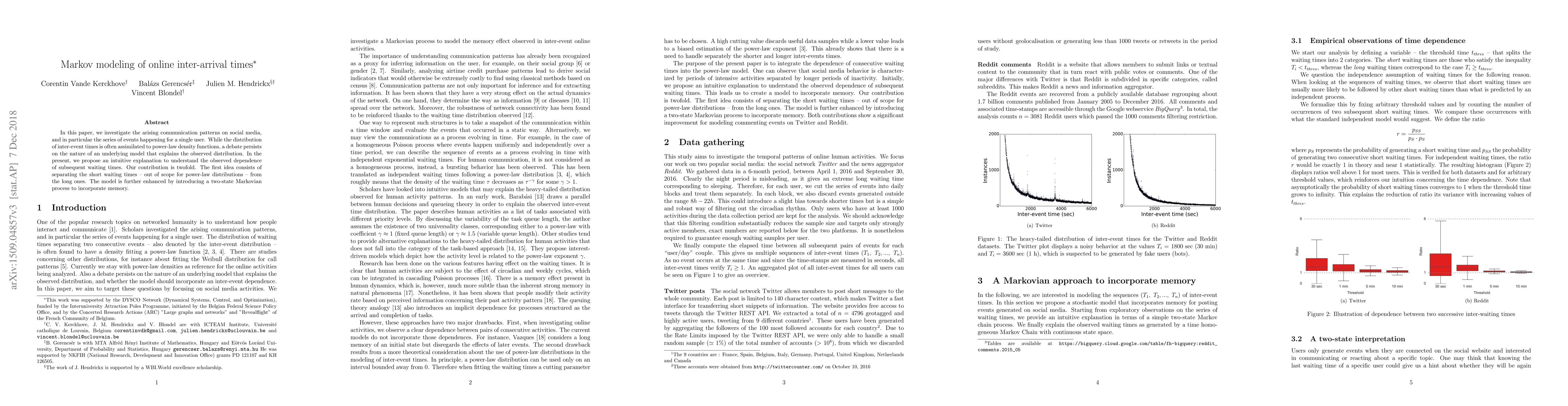 Researchers proposed a new Markov model to explain online waiting times on social media, separating short from long intervals and incorporating memory using a two-state process.