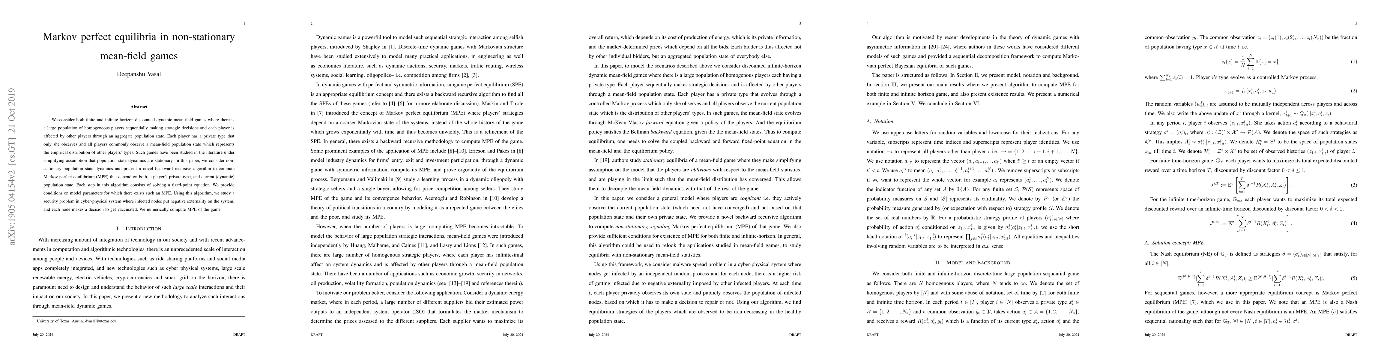 This paper develops a novel backward recursive algorithm to compute Markov perfect equilibria in non-stationary mean-field games, where players' decisions depend on both their private type and dynamic population state. The algorithm is applied to a cyberphysical security problem where nodes decide to vaccinate against infection, considering the externalities imposed by infected nodes.